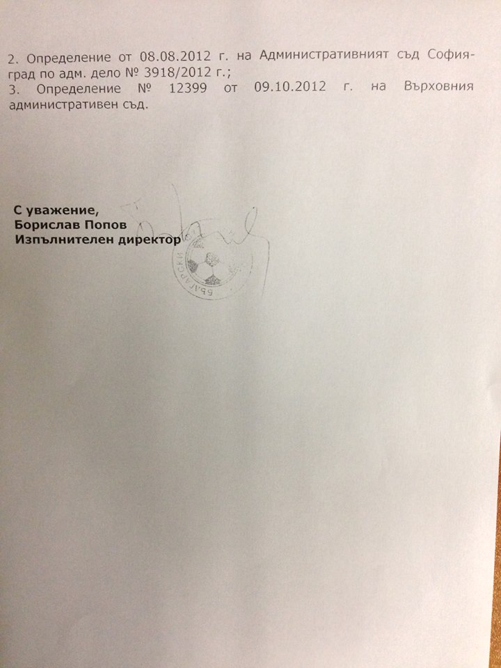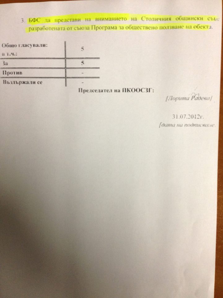Това е становище на изпълнителния директор на БФС Борислав Попов до Комисията по опазване на околната среда към Столичния общински съвет: