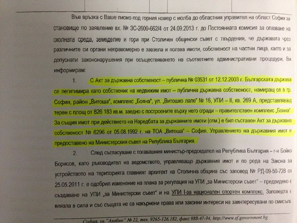 Това е становището на областния управител на София-област Росен Малинов във връзка със статута на земята в "Бояна".