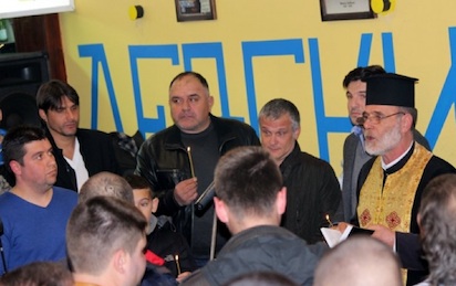Жечев и Веселинов направиха кратки изказвания пред присъстващите, а Отец Генадий освети помещението по каноните на църквата и пожела здраве на привържениците.