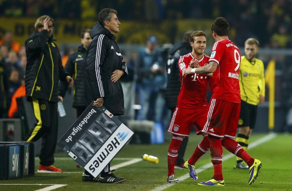 Гьотце обаче игра в тази роля само веднъж в лигата този сезон, а вместо това първият избор на Пеп за централен нападател бе Марио Манджукич, изпъкнал при триумфа на Байерн в ШЛ миналия сезон. Томас Мюлер също бе използван на върха на атаката в няколко случая, макар като цяло да играеше по в дълбочина, а Клаудио Писаро получи веднъж доверие и е малко вероятно да е още в клуба, когато Левандовски направи своя дебют.