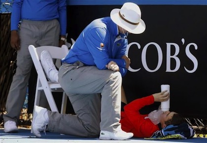 Канадският квалификант Франк Данчевич и момче, подаващо топките припаднаха във втория ден на Australian Open. 41-градусовата жега, измъчила тенисистите днес, се отрази особено зле на Данчевич, който припадна на Корт №6 по време на мача си с французина Беноа Пер от първия кръг. Данчевич взе таймаут, но той не го спаси от поражение с 6:7 (12), 3:6, 4:6.
