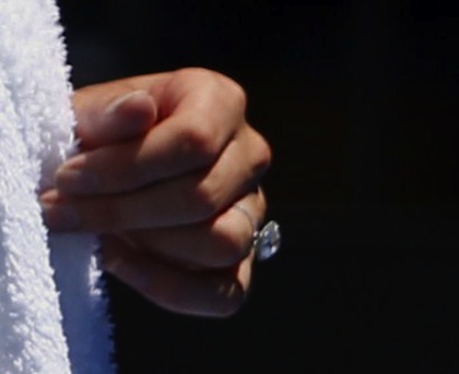 Вожняцки показа годежния си пръстен на корта (снимки)