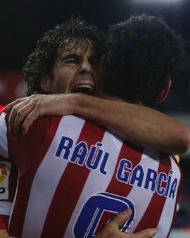 Атлетико Мадрид продължава да е непобедим на своя "Висенте Калдерон" от началото на сезона. "Дюшекчиите" надвиха с 2:0 Валенсия и с общ резултат 3:1 се класираха за 1/4-финалите в турнира за Купата на краля. Головете за актуалния носител на трофея отбелязаха Диего Годин и Раул Гарсия след почивката. И двете попадения паднаха след центрирания от ъглов удар и точни изстрели с глава. Валенсия завърши срещата с човек по-малко, след като в последните минути червен картон получи Даниел Парехо.