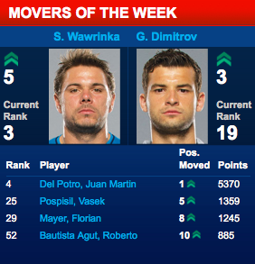 Именно Вавринка и Димитров са обявени в официалния сайт на АТР за "Най-прогресиращи тенисисти през седмицата".