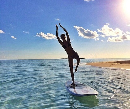 Самата бразилка също публикува фотос от почивката в профила си в "Туитър", където показва как умее да балансира на един крак върху борд във водата.