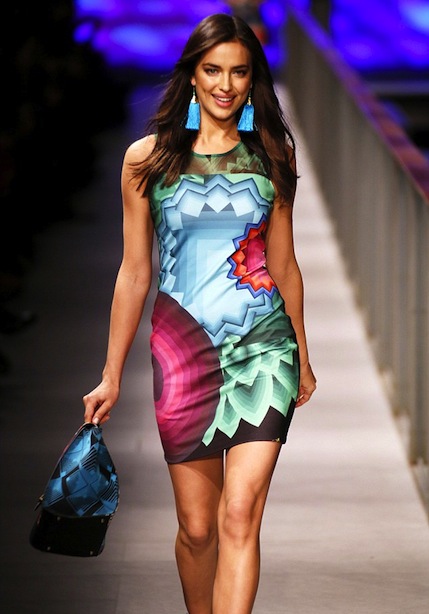 Руският топмодел Ирина Шейк дефилира по време на седмицата на модата в Барселона. Половинката на нападателя на Реал Мадрид Кристиано Роналдо, която е рекламно лице на марката "Desigual", се разходи по модния подиум и бе звездата на вечерта в каталунската столица. Тя представи дрехи от колекцията пролет/лято 2014 и смени различни тоалети.