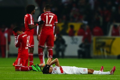 Байерн (Мюнхен) обърна Щутгарт с 2:1 в отложен мач от 17-ия кръг на Бундеслигата. Баварците стигнаха до успеха със зрелищен гол в добавеното време на Тиаго Алкантара. Преди това домакините поведоха с попадение на Ведад Ибишевич в 29-ата минута, а резервата Клаудио Писаро изравни в 76-ата.