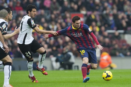 Шампионът на Испания Барселона допусна домакинска издънка след 2:3 у дома срещу Валенсия в мач от 22-ия кръг на Примера, игран пред 69 969 зрители на "Камп Ноу". Ранен гол на Алексис Санчес в седмата минута подлъга "синьо-червените", че лесно ще вземат победата и допуснаха фатална разконцентрация. Глупави грешки в отбрана вкараха на три пъти топката в мрежата на Виктор Валдес - Даниел Парехо (44), Пабло Пиати (48) и Пако Алкасер (59) се разписаха. Лионел Меси вкара несъществуваща дузпа в 54-ата минута. След загубата е много вероятно Барса да изпусне водачеството, като утре вече може да се озова и на третата позиция.