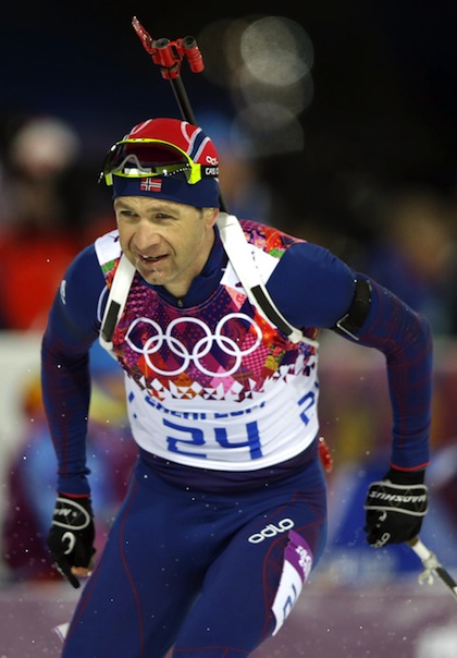 Легендарният норвежец Оле Ейнар Бьорндален спечели златния медал в първата дисциплина в биатлона на Зимните олимпийски игри в Сочи. 40-годишният Бьорндален показа невероятно ски-бягане и спечели спринта на 10 км с време 24:33.5 минути и една грешка в стрелбата. Среброто грабна австриецът Доминик Ландертингер, който порази всичките 10 мишени, но остана на 1.3 сек. от шампиона. Трети се нареди Ярослав Соукуп от Чехия, който с 0 грешки финишира на 5.7 сек. от Бьорндален.
