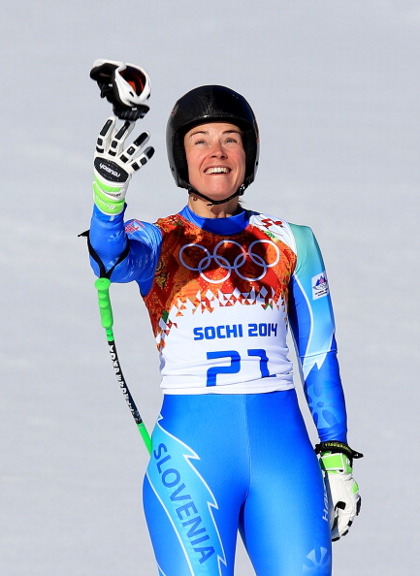 Тина Мазе, която e една от шестте скиорки-алпийки в историята с победи и в петте отделни дисциплини за Световната купа, миналата година бе неудържима и спечели Големия кристален глобус с рекордните 2414 точки, но през този сезон изпитваше много проблеми. Словенката пристигна в Сочи със само една победа за Световната купа - в спускането в Кортина Д'Ампецо (Италия) в края на януари. Тя направи смяна в треньорския си екип след неучедителния старт на сезона и това решение се оказа правилно, тъй като словенката намери най-добрата си форма тъкмо в най-важния момент. Мазе бе много близо до медал и в суперкомбинацията преди броени дни, но остана четвърта, на 10 стотни от бронза.