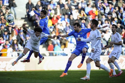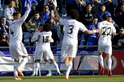 Отборът на Реал Мадрид изравни лидерите Барселона и Атлетико Мадрид с очакван успех с 3:0 като гост на Хетафе в двубой от 24-ия кръг на Ла Лига, игран "Колисеум Алфонсо Перес" в южната част на испанската столица. Хесе Родригес отново опъна мрежата след майсторско изпълнение в петата минута. Карим Бензема (27) и Лука Модрич (66) също бяха точни. С много силни изяви ще се запомнят Анхел ди Мария и Модрич, които организираха прекрасно играта на "лос бланкос".