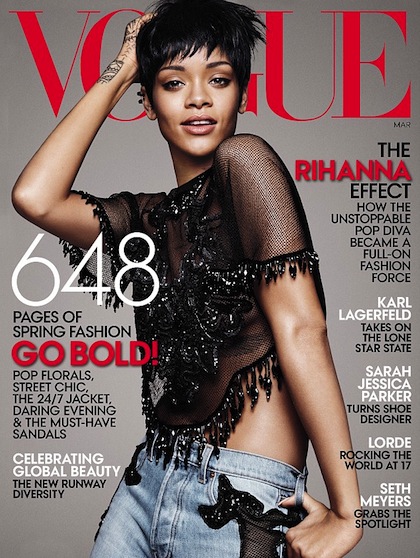 Поп звездата Риана обича да шокира и не изневерява на навиците си в последния брой на американското издание на "Vogue". Барбадоската красавица се появява на корицата на модната Библия и признава: "Ако нося топ, никога не слагам сутиен. Ако нося сутиен, нося само сутиен". Бившата приятелка на бейзболиста Мат Кемп разказва още, че като дете се е обличала като момче. "Стилът ми на обличане и поведението ми бяха момчешки. Всичките ми приятели бяха момчета. Обичах техните игри. Бях бунтарка и исках да приличам на брат ми" - признава 25-годишната певица.