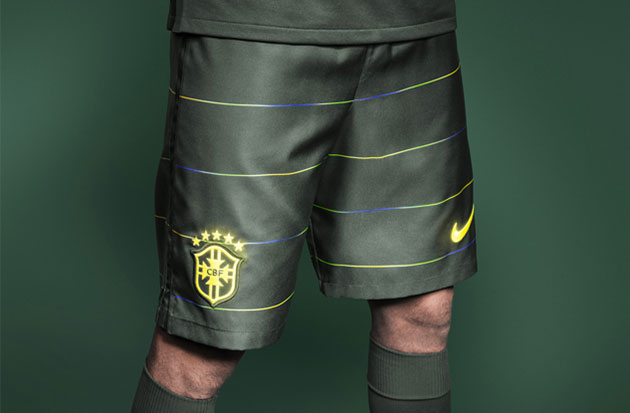 Шортите са със същия цвят и са вдъхновени от сърфинга и плажовете на страната, като налице са още хоризонтални линии, съставени от жълто, зелено и синьо - цветове, присъстващи в националния флаг на Бразилия.