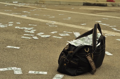 С около десет килограма фалшиви 100-доларови банкноти са пълни трите чанти, които носят крадците.