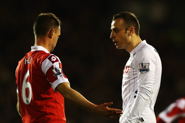 Десетина минути преди това българинът беше провокиран от грубо нарушение на Клинт Хил срещу съотборника му Йоргос Карагунис. Бербатов се нахвърли на Хил и си размени остри реплики с бранителя, който получи жълт картон за проявата си.