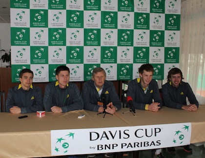 Отборът на България за Купа „Дейвис” даде пресконференция на ТК „Локомотив” в Пловдив при голям медиен интерес. Националите играят срещу Естония от 5 до 7 април в двубой за оставане във втора група на Евро-африканската зона на турнира.