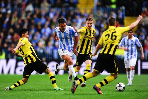 Отборите на Малага и Борусия (Дортмунд) завършиха наравно 0:0 в първия четвъртфинал помежду си от Шампионската лига. Германците могат да съжаляват много за този резултат, тъй като направиха куп пропуски от чисти положения и ще трябва да се надяват това да не им изиграе лоша шега на ревнаша след седмица. Гостите бяха далеч по-активният тим през целия мач, но така и не намериха път към вратата на Вили Кабайеро, който на няколко пъти спаси мрежата си, а в други случаи мерникът на Роберт Левандовски и Марио Гьотце не бе точен. Това бе първият мач от Шампионската лига тази година, в който Борусия не отбеляза гол. Домакините пък могат да са доволни, че не допуснаха гол и всяко едно тяхно попадение след седмица ще има двойна стойност.