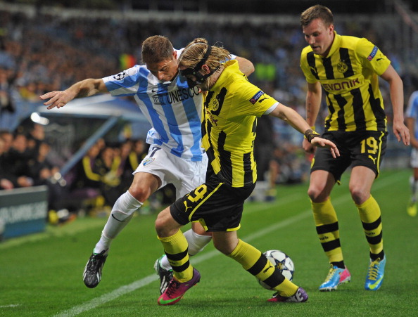 В първите минути на мача Борусия имаше две много чисти положения за гол. Първо в 14-ата минута Марио Гьотце излезе сам срещу вратаря, но стреля слабо и Вили Кабайеро спаси. В 19-ата минута на подобна позиция след контраатака излезе и Марсел Шмелцер, но стражът отново бе на мястото си. Последваха още опасни атаки на гостите, но гол така и не падна. В края на полувремето дойде най-чистото положение за Малага, когато след центриране от корнер първо Роман Вайденфелер спаси удар на Жулио Баптища, а след това добавката на Жереми Тулалан бе избита от бранител на голлинията.