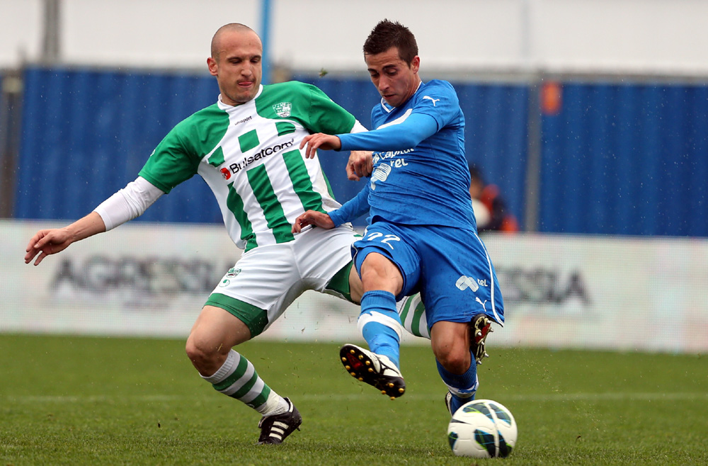 В 23-ата минута Йорданов откри. Лявото крило бе най-съобразителен след избит от Караджов далечен