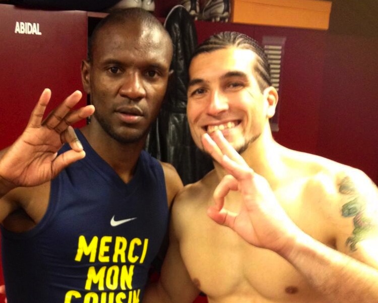 Френският бранител на Барселона Ерик Абидал се завърна на терена в официална среща за първи път от 402 дни при победата с 5:0 над Майорка снощи. Опитният защитник отново е в кондиция за игра след трансплантанция на черен дроб. След срещата неговите съотборници изразиха радостта си от неговото завръщане, публикувайки мили думи и снимки с Аби.