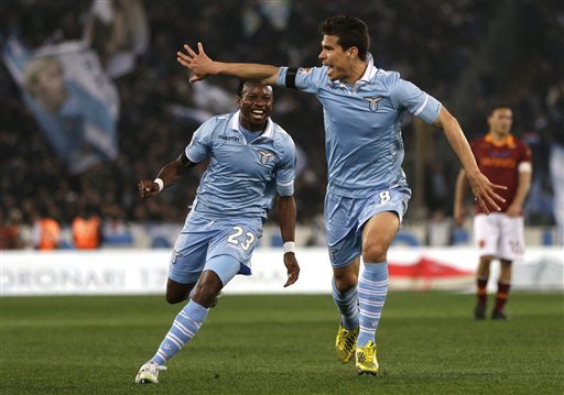 а игра на Рома и още в 1-ата минута домакините стигнаха до голова опасност като Ерик Ламела стреля от близо с глава, но право в ръцете на вратаря. Постепенно обаче Лацио взе нещата в свои ръце и в 13-ата минута Антонио Кандрева стреля опасно и Маартен Стекеленбург спаси. В 16-ата минута обаче Ернанеш бе оставен да овладее една топка в средата на терена и необезпокояван да напредне и да стреля от около 25 метра, като с неспасяем удар в далечния ъгъл не остави шансове на вратаря за 0:1.