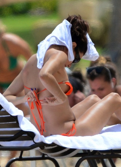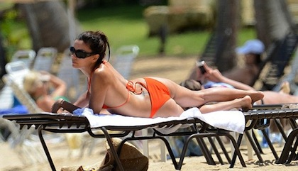 Холивудската звезда Ева Лонгория очевидно прави всичко възможно, за да хване равномерен тен и да избегне белезите, които горнището на банския й може да остави. Отчаяната съпруга неволно или напълно съзнателно показа показа гърдите си, докато нагласяше банския си костюм на плажа в Пуерто Рико. Бившата съпруга на баскетболиста от НБА Тони Паркър беше облечена с оранжеви бикини и отново си пролича, че в последно време е качила килца. Актрисата се е отдала на пълна почивка и в нея явно не се включват диети и строги хранителни режими, защото всички успяха да видят шкембенцето, което тя е направила.