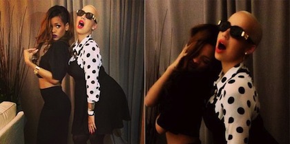 Риана определено знае как да се забавлява - както на сцената, така и зад нея. Ако не си съблича дрехите, то поне ще провокира феновете си с палави снимки. След двучасов концерт в Лос Анджелис, барбадоската не само, че не изглежда уморена, ами дори дава вид на напълно презаредена и изпълнена с енергия. Заедно с близката си приятелка Амбър Роуз, изпълнителката позира пред камера на приятел, демонстрирайки слабата си фигура.
