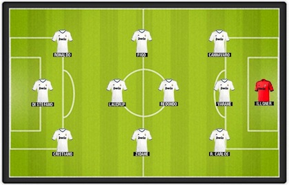 Читателите на испанския вестник "Marca" избраха идеалния отбор от чуждестранни играчи на Реал Мадрид за всички времена. Идеята за допитването се появи, след като в четвъртфиналния мач-реванш от Шампионската лига с Галатасарай в Истанбул, "белите" излязоха на терена за първи път в историята си с единадесеторка, в която фигурираше само един испанец - вратарят Диего Лопес. Други двама испанци - защитниците Алваро Арбелоа и Раул Албиол, също взеха участие в мача, но се появиха в игра като резерви. Реал загуби с 2:3 реванша, но с общ резултат 5:3 елиминира турския гранд и се класира на полуфиналите.