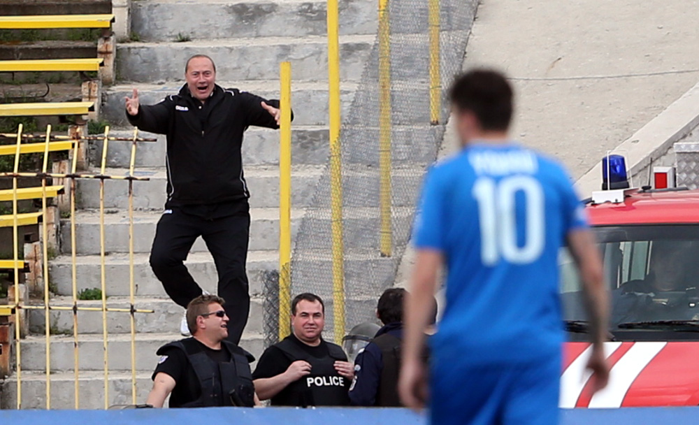 Треньорът на Локомотив (София) Емил Велев гледа срещата с Левски от сектор "Г" на стадион "Георги Аспарухов". Специалистът е наказан за две срещи и предпочете трибуната за гостуващата агитка. Кокала се е позиционирал в близост до сектор "В" и от тази позиция дава указания на своите футболисти.