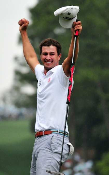 "Невероятно е да съм на върха - каза Адам Скот точно преди миналогодишният шампион Буба Уотсън да му облече зеленото сако. - За мен това е чест".