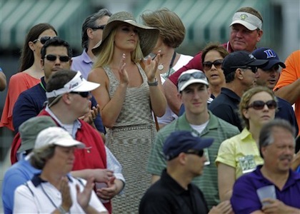 Световната шампионка по ски алпийски дисциплини Линдзи Вон подкрепяше отблизо своя любим - голфъра Тайгър Уудс, по време на турнира от сериите "Мастърс" в Огъста. Американката беше в публиката през цялото време, като бе облечена в елегантна бежова рокля, която бе съчетала с подходяща шапка с широка периферия. Тайгър и Линдзи обявиха официално връзката си миналия месец и вече не се крият от обективите на фотографите.