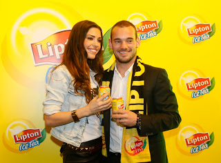 Холандският плеймейкър на Галатасарай Уесли Снайдер и красивата му съпруга Йоланте са звездите в турска реклама на Lipton Ice Tea. Рекламата не е особено сложна - Снайдер опитва различни турски ястия, след което утолява жаждата си с напитката.