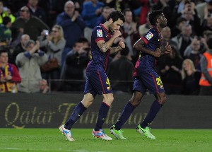 Отборът на Барселона надигра мъчно с 1:0 Леванте в мач от 32-рия кръг на Ла Лига, игран на "Камп Ноу". Без Лионел Меси играта на каталунците вървеше трудно и победният гол дойде чак в 84-ата минута от крака на Сеск Фабрегас. Давид Вийя изпусна дузпа в 16-ата минута, отсъдена за съмнително падане на Андрес Иниеста. След успеха Барса е само на две победи от титлата, а трите точки тази вечер запазиха спокойствието в съблекалнята преди дуела с Байерн (Мюнхен).