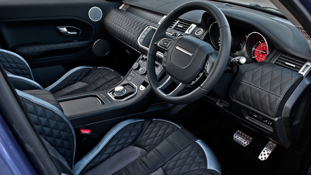 Тунерите Kahn Design наскоро показаха новата версия на кита си за Evoque, която са направили, наречен Evoque RS250. Синя е. С черно за контраст.