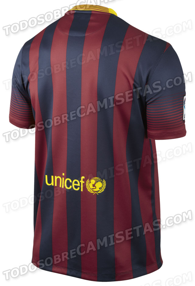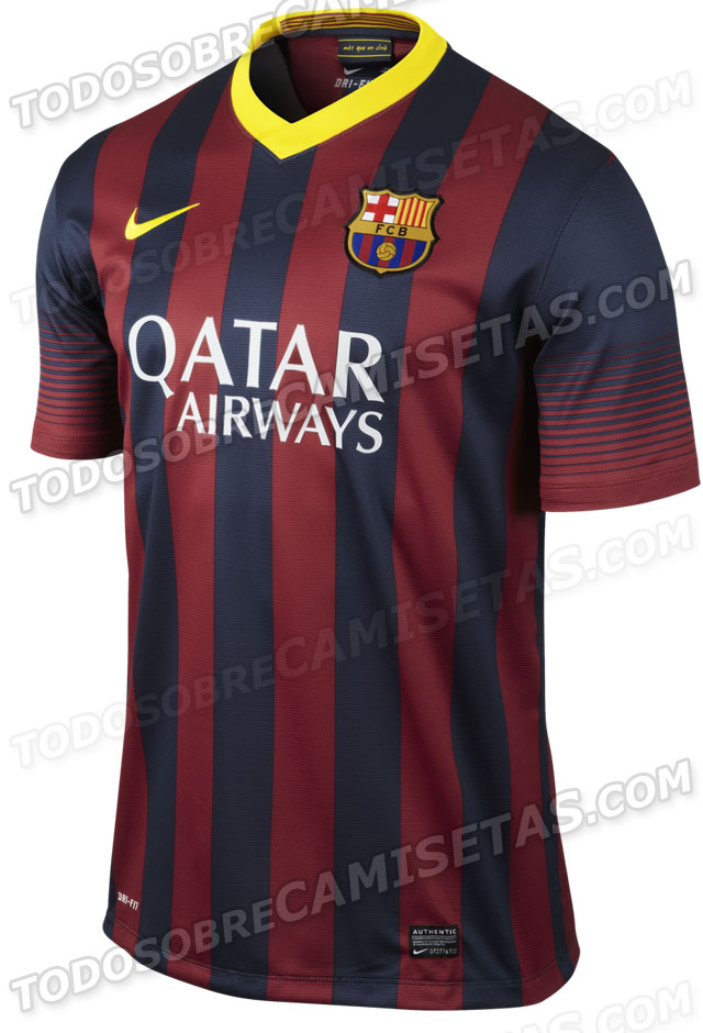 Официалната фланелка на Барселона за сезон 2013/14 вече е ясна, разкри специализираният сайт todosobrecamisetas.com. Изданието извади на показ за първи път новата титулярна тениска за идната кампания. Традиционно тя е в синьо-червено, а ако около шията е обагрена в жълто.