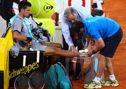 Като опитен тенисист, Джокович се опита да вземе инициативата в началото на втория сет, но Димитров нямаше никакво намерение да се предава. При 1:1 той спаси точки за пробив, а след това имаше шанс да вземе подаването на сърбина, но не успя. Нямаше обаче кой да спре българския талант в шестия гейм, когато пробивът стана факт. Публиката в залата предвкусваше сензацията, но трябваше да почака още. В следващия гейм Джокович стигна до две точки за пробив, но при първата от тях контузи глезена си. На лицето на сърбина се появи гримаса, издаваща силната болка, която изпитва. Намесата на физиотерапевта и близо 10-минутната пауза изправиха Ноле на крака и не без помощта на голяма доза късмет той съумя да върне пробива.
