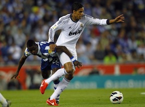 В началото футболистите на Еспаньол опитаха няколко интересни атаки към вратата на Диего Лопес, но първата голова ситуация бе в актива на Реал. Младият Мората бе изведен на стрелкова позиция и само добрата намеса на Франсеск Касийя му попречи да открие резултата. В 19-ата минута игралият до момента като десен бек Рафаел Варан се контузи и бе заменен от Чаби Алонсо. Испанският национал зае традиционното си място в средата на терена, а Есиен се върна в защита.