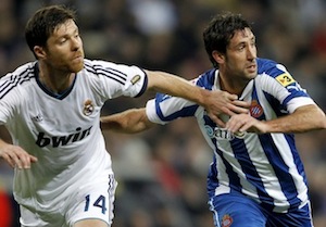 Еспаньол поведе в 23-ата минута с попадение на Стуани. Жоан Верду центрира от корнер, Хуан Форлин отклони топката, а Серхио Гарсия я върна към Стуани, който направи безпомощен Диего Лопес. Домакините продължиха да действат със самочувствие и Серхио Гарсия имаше чудесен шанс да удвои аванса им, но пропусна след хитро подаване на Верду. Малко по-късно топката отново се озова в мрежата на Реал, но голът на Ектор Морено беше отменен заради нарушение.