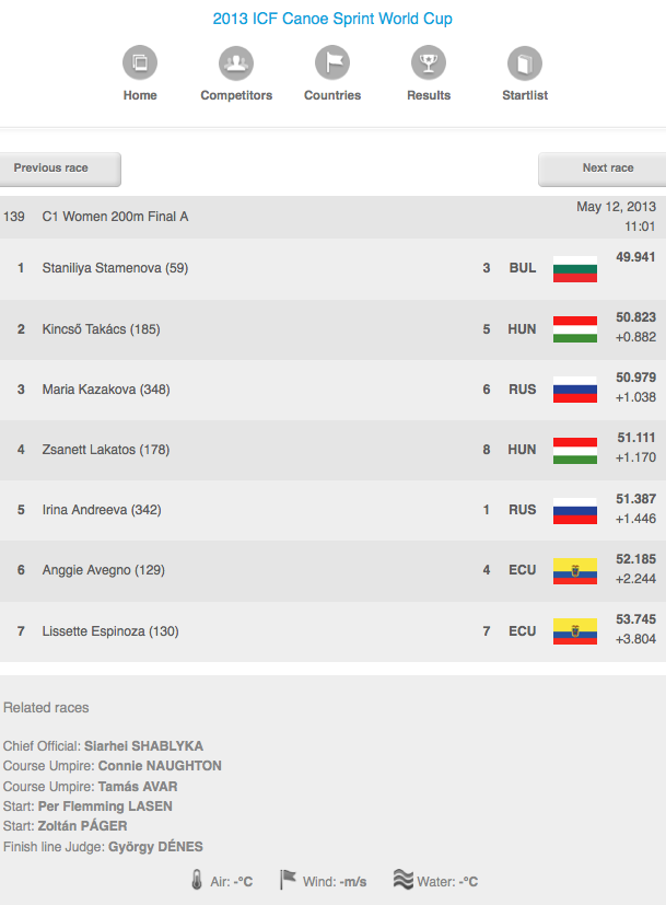 Стаменова стигно до първото място с резултат 49,941 сек. Втора остана Кинга Такач (Унгария) с резултат 50,823 сек, а третото място и бронзов медал спечели Мария Казакова от Русия с време 50,979 сек.