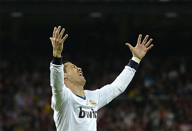 Срещата започна с двуостра игра и липса на положения пред двамата вратари. В петата минута Кристиано шутира отдалеч, получи се рикошет, но Тибо Куртоа внимаваше. В 13-ата Марио Суарес загуби опасно топката, Карим Бензема напредна за остра контра, но CR7 спечели само корнер. При ъгловия удар пролича майсторството на "седмицата". Португалецът пребори Диего Годин на ръба на позволеното и с глава насочи прекрасно топката в десния долен ъгъл - 1:0. Отново Кристиано показа прекрасния си отскок и усет към топката във въздуха.