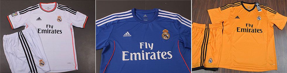В испанските медии се появиха екипите на Реал Мадрид за сезон 2013/14. Те ще са с надпис на новия голям спонсор на кралския клуб - "Fly Emirates". Титулярната фланелка на Adidas е почти изцяло бяла с три черни райета на рамената и оранжеви кантове на върха на ръкавите. Гащетата са бели с три черни райета. Първият екип на "лос меренгес" прилича на втория на Байерн (Мюнхен) от настоящия сезон.