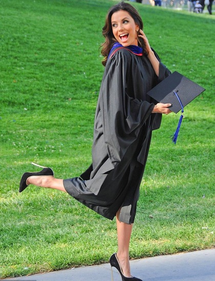 Холивудската звезда Ева Лонгория вече може да се похвали с магистърска степен. След като през последните три години следва в Калифорнийския университет, бившата съпруга на баскетболната звезда Тони Паркър, най-после получи своята диплома по чикано науки (програма, изучаваща латиноамериканското население). "Днес е голям ден!!! Много се вълнувам, че получавам магистърската си степен по чикано науки", написа в профила си в "Туитър" звездата от "Отчаяни съпруги".