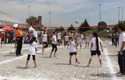 Още рано сутринта бяха организирани турнири по мини волейбол за децата от училищата в Пиаченца пред местната зала "Пала Банка". Самите срещи бяха спирани и треньори и учители обясняваха на малчуганите правилата на играта и им показваха как се изпълняваха основните елементи.