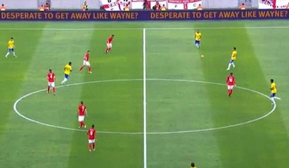 Находчива туристическа агенция намери начин да извлече позитиви от желанието на Уейн Рууни да напусне Манчестър Юнайтед. По време на контролата Бразилия - Англия (2:2) агенцията пусна реклама, която подиграва нападателя. "Мечтаете да се махнете като Рууни? Избягахте с teletextholidays.co.uk", гласеше банерът, който се сменяше край терена на стадион "Маракана". Оказа се обаче, че рекламата се е излъчвала само в Англия. ТВ каналът, който предаваше мача, е монтирал посланията на собствените си рекламодатели върху паната.