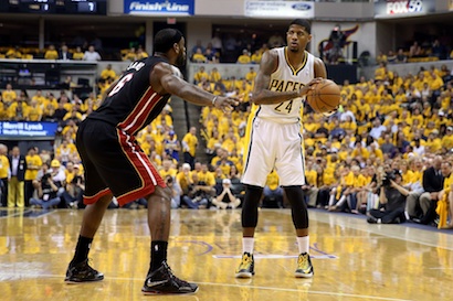 Седем точки, седем борби, четири асистенции и три грешки. Два вкарани опита от общо девет стрелби и излизане за шест лични нарушения. Това е статистиката на Пол Джордж от седмата среща на неговия отбор Индиана Пейсърс срещу Маями Хийт (76:99), след която "горещите" отново триумфираха като крале на Изток и ще се изправят срещу Сан Антонио във финалите.
