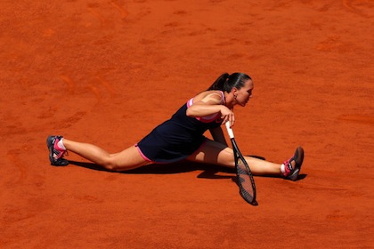 Шампионката от 2011 година Мария Шарапова продължава защитата на титлата си на "Ролан Гарос", след като се класира за 1/2-финалите след труден успех над Йелена Янкович с 0:6, 6:4, 6:3. Рускинята направи обрат, след като не взе нито един гейм в първата част и за място на финала ще се изправи срещу третата в схемата Виктория Азаренка.