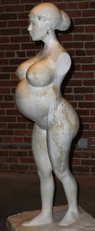 Американската риалити звезда Ким Кардашян никога не се е срамувала да покаже пищните си форми. Този път обаче тя стигна прекалено далеч, дори за самата себе си. Тялото на бременната бивша съпруга на баскетболиста от НБА Крис Хъмфрис бе увековечено на статуя на известния скулптур Даниел Едуардс. Статуята е изложена в галерия в Лос Анджелис, където всеки желаещ може да отиде и да я види отблизо. За никого не е изнанада, че е наблегнато на корема и огромния бюст на брюнетката, тъй като тя търпя множество критики заради качените килограми. Ким и приятелят й Кание Уест очакват момиченце през юли.