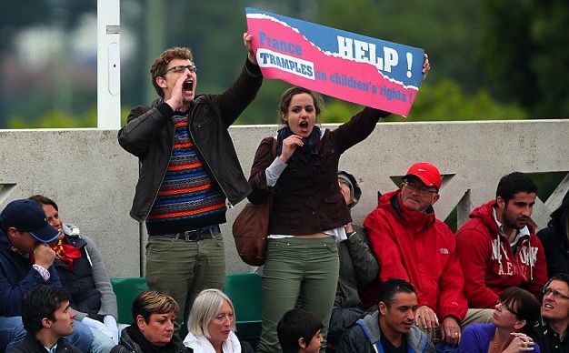 Други двама зрители на трибуните на централния корт "Филип Шатрие" също издигнаха подобни лозунги и бяха отстранени от охраната на събитието. Смята се, че всички протести са били координирани и са свързани с желанието на Франсоа Оланд да легализира гей браковете.