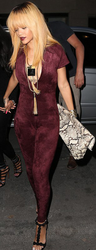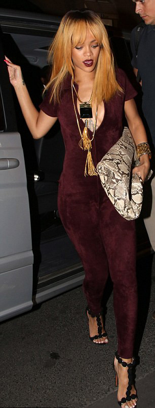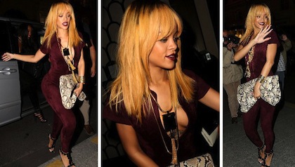 Риана няма равна що се отнася до външния й вид, който се променя от сутрин до вечер със скоростта на светлината! Стилът на певицата претърпя истинска революция през последните години и все още не можем да определим точно какъв е той. В повечето случаи бившата на бейзболиста Мат Кемп шокира фенове и медии с провокативна и кичозна визия, от време на време обаче се случва да ни изненадва доста приятно с елегантно и семпло облекло, състоящо се от едноцветна рокля или по-спортен тоалет.