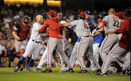 Общо шестима играчи и треньори бяха изгонени в резултат на две масови спречквания по време на мача между Лос Анджелис Доджърс и Аризона Дайъмъндбекс от редовния сезон в Мейджър лийг бейзбол (MLB). Тази нощ "мошениците" победиха с 5:3 като домакини на своя ст. "Доджър", но първо набиха редица представители на "гърмящите змии".